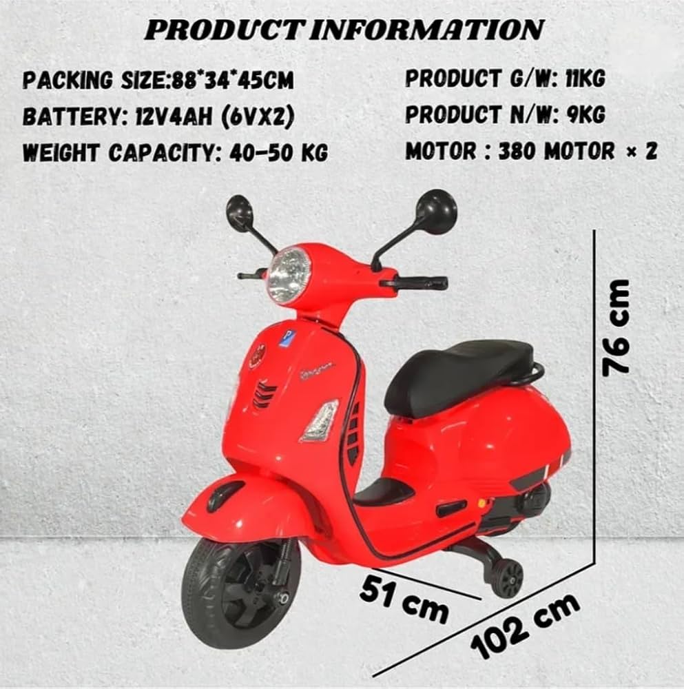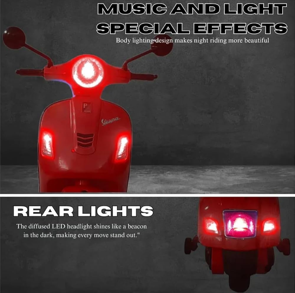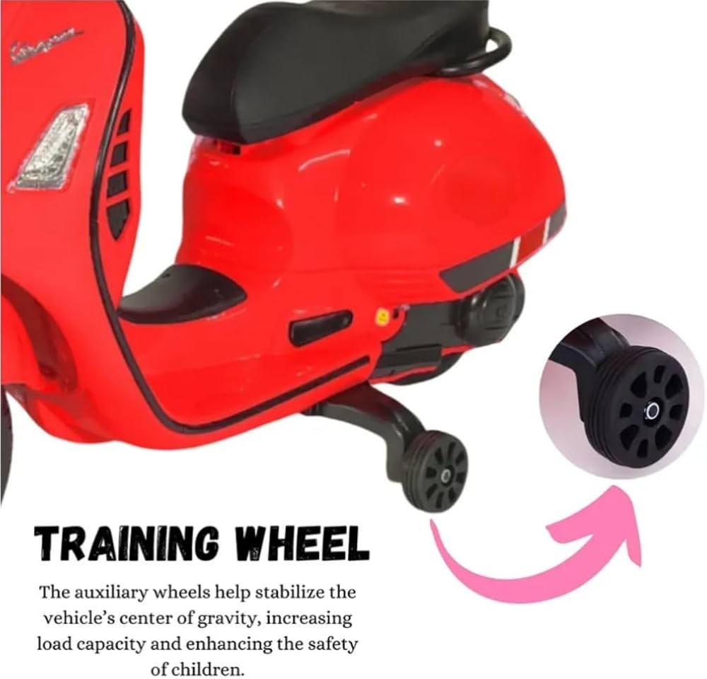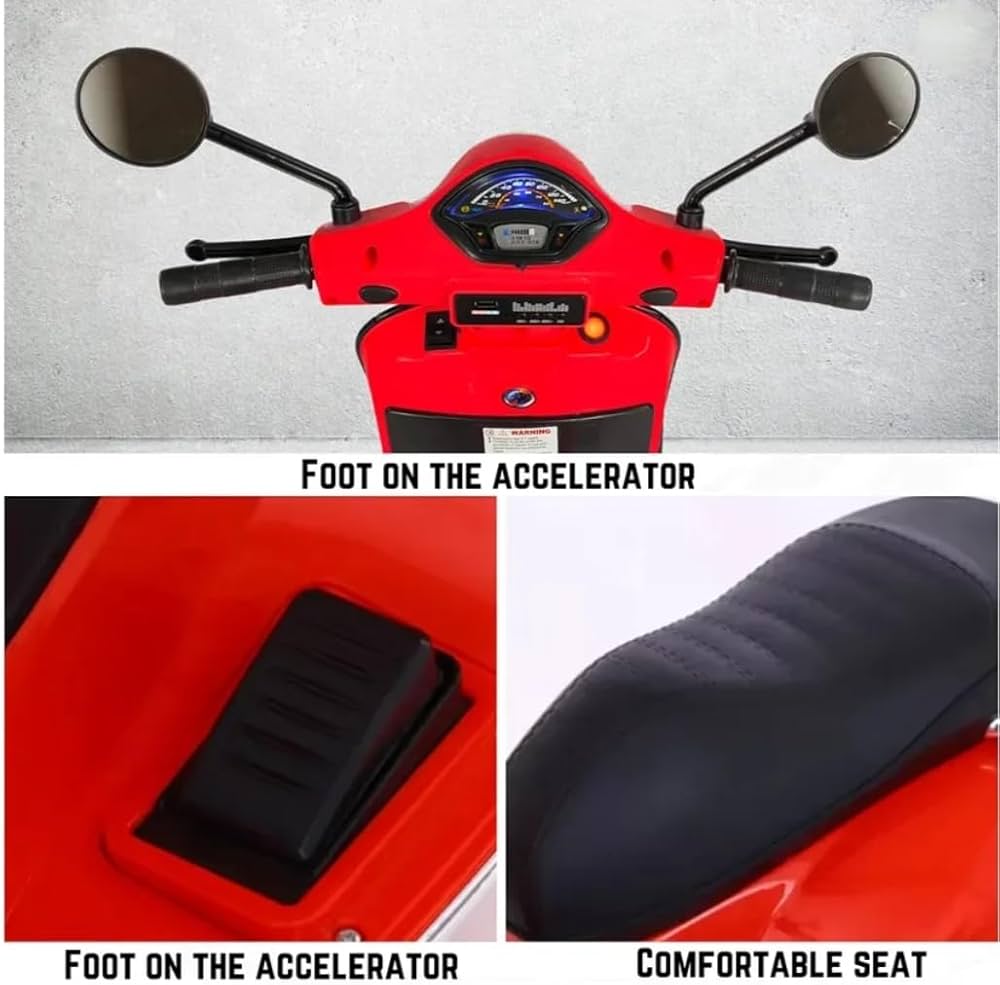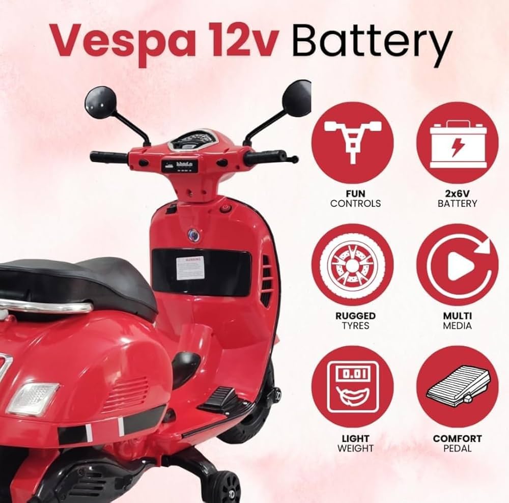 KOO Vespa 12v Battery Operated Rechargeable Ride on Scooter with Foot Accelerator for Kids, 2 to 6 Years, [Red]
