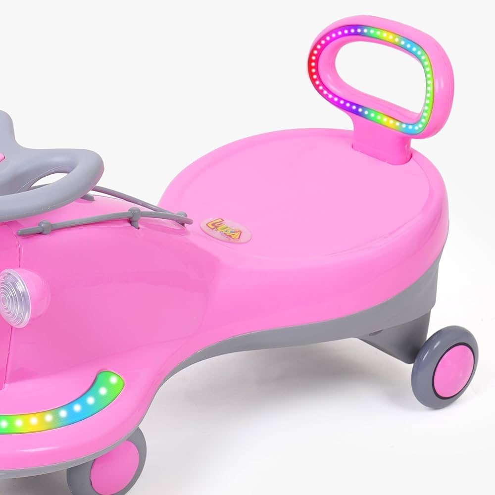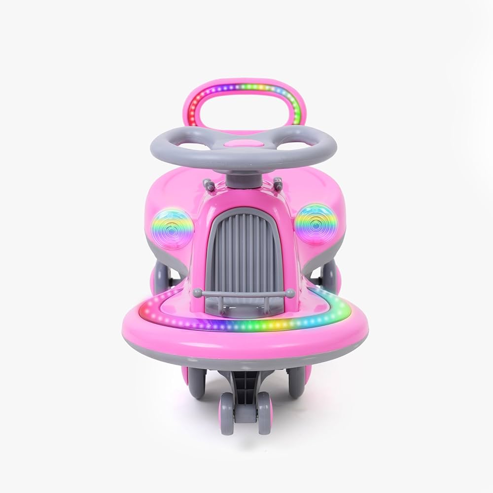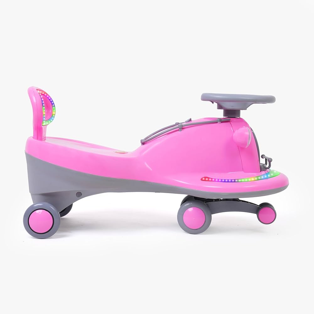 Luusa® Train Magic Car | Swing Car | Ride On Toy Car for Kids | Twister Ride On | Magic Toy Car | Cooper Train Car Rider with Steering Music & Lights for Boys & Girls (Pink)